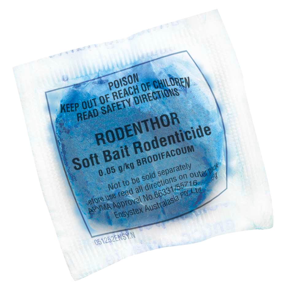 RODENTHOR Soft Bait Rodenticide is irresistible to rodents, and a single feed is lethal to every rodent, every time. The edible sachets allow the release of the carefully selected aromas which draw rodents to the bait. They then readily feed on the high protein, moist pasta-based bait which provides both a high quality food source, and moisture. Prepared using the finest ingredients, RODENTHOR’s soft pasta base is by far the most palatable bait presentation for rodents.