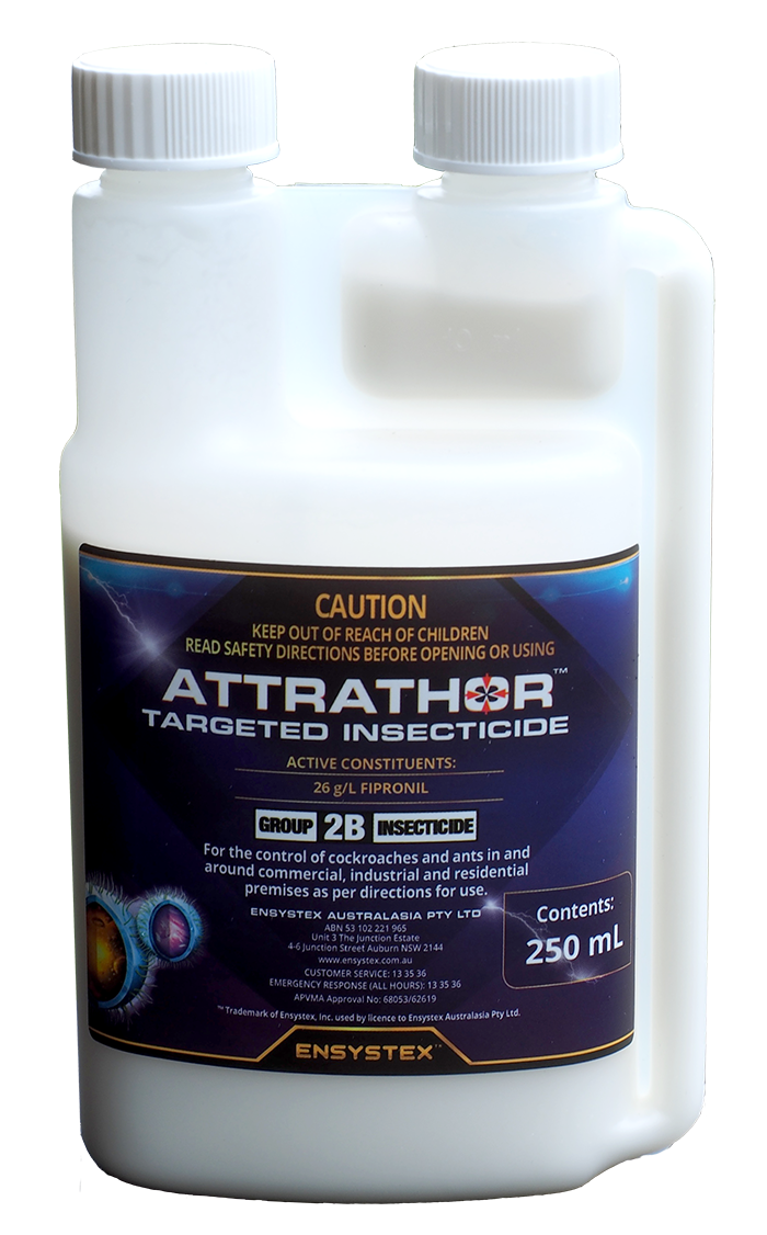 Now ATTRATHOR revolutionises the market again using a targeted film application containing a food (bait) attractant and powered by fipronil. It has the efficacy of a traditional gel bait, but is much less labour intensive to apply, and is approved for use in food preparation areas.